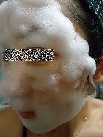 そして、洗い流すのですが、水を含ませると洗顔をしているように、ぬるぬるするので、洗顔感覚で洗い流しました。