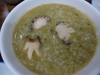 アワビの肝とかをすり潰しお粥を作られているそうで、茶っぽい色をしています。